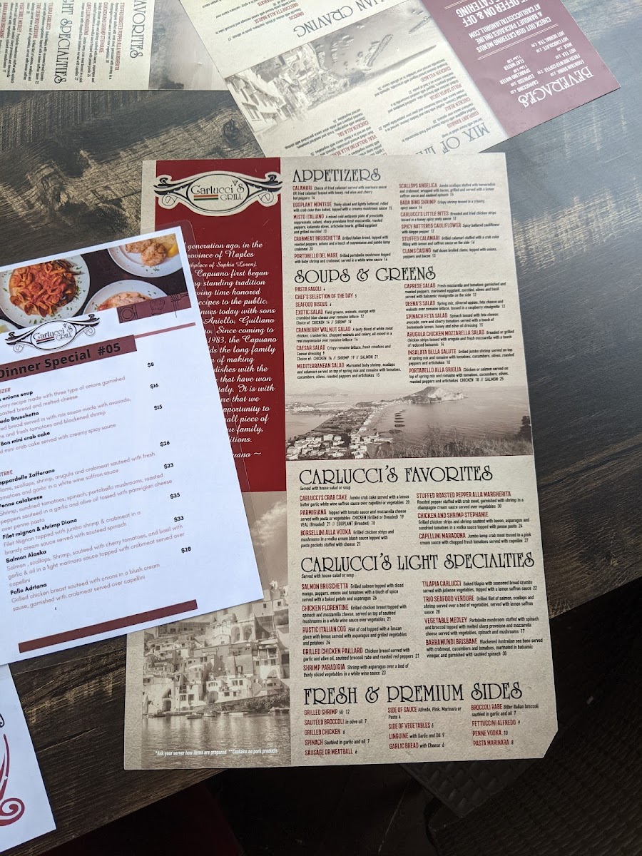 Carlucci's Grill is also a BYOB establishment, allowing you to curate your own perfect pairing of wine with any dish you select. Whether you’re celebrating a special occasion or simply enjoying a night out, this provides a personal touch to your meal.